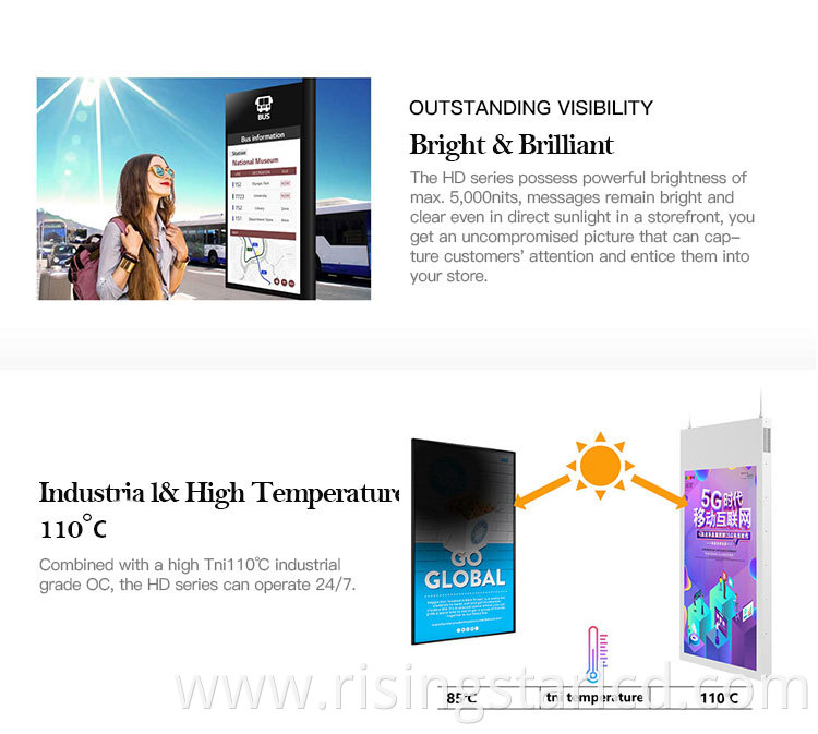 2500 nits digital shop window displays adopt full aluminum alloy design.esaily to installed.With wide view angle and clearly picture esay to captivates customer .